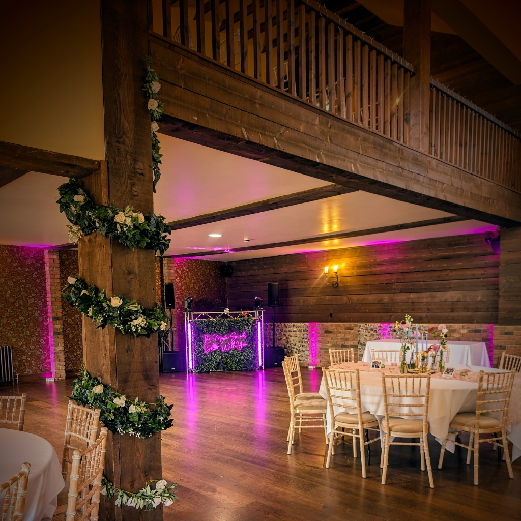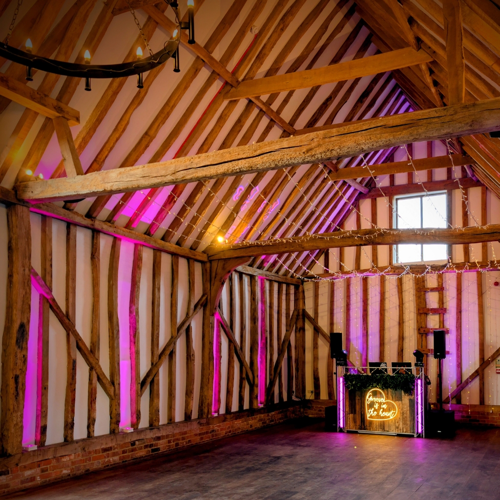 The last thing anybody wants is to go to all that effort and cost of perfecting a look in their chosen venue to then have the DJ arrive half way through the day and set up an eyesore at the back of the room. If you’ve chosen a rustic theme or a barn for your venue, a high gloss white or black disco setup in the corner stands out like a sore thumb and bears no contrast whatsoever!